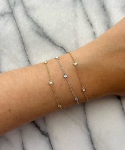 Pulsera de oro blanco 14K con 5 diamantes corte brillante para un total de 0.13 quilates de diamantes corte brillante.